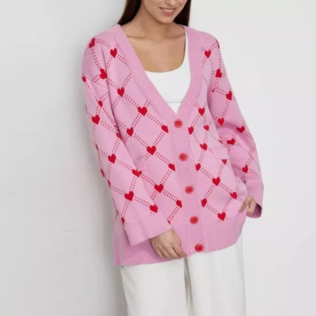 Whether you’re heading to the office, enjoying a casual day out, or dressing up for a night out, this knit cardigan is incredibly versatile. Its elegant design and comfortable fit make it suitable for middle-aged women looking to enhance their style quotient. The unique geometric pattern and pink hue ensure you stand out in the best way possible.